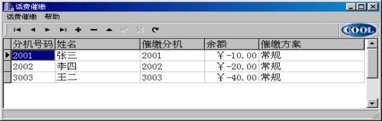 催缴调度表中的%欠费%,用户可以从计费系统的月报表中提出(用户输入月份,自动根据催缴电话取过来);也可由用户再次修改(针对所欠不是一个月的费用),但“刷新”又从从计费系统的月报表中更新数据。