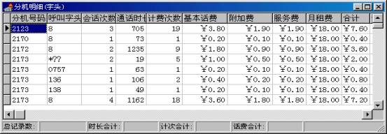 2) 在语音提示下,用户使用电话可查到每月的各项综合费用,例如市话费、本地网费、长话费、固定费、其它和总费用等。