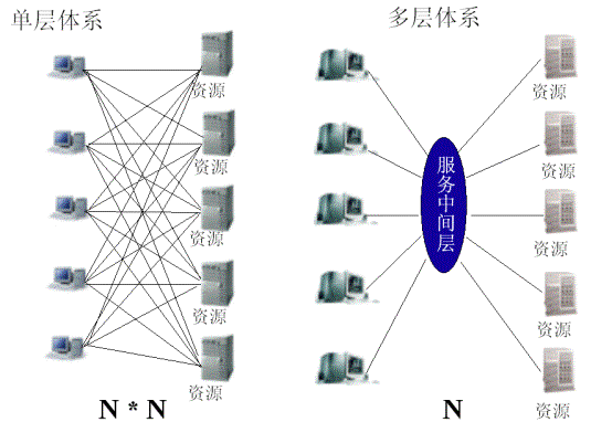 采用多层体系还有一个重要的原因是巨大访问量、巨大数据量所必须得技术要求。任何数据库及系统都不可能同时满足成百上千的同时访问,传统的C/S体系结构在这种冲击下,一般都会崩溃。因此必须引入中间件技术,来共享数据连接,缓冲巨大的访问冲击,同时缓存数据与对象,加快访问速度。