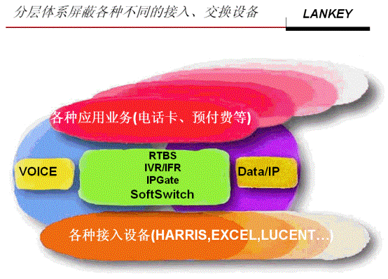 实际上相当于一台高层的交换机系统,不过这个交换机系统实际上是个软件控制平台,主要用来为通信平台提供对各种物理交换机的具体控制、交互,从而可以为通信运营平台屏蔽各种接入设备,如目前可以接入的设备有:Harris 交换机、Excel可编程交换机、AVAYA