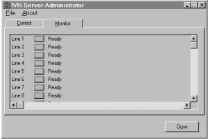 系统的运行,定义各个端口加载的IVR流程脚本,此外在IVR运行时观察各个端口的运行状态,右图是IVR管理工具的监视界面。