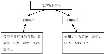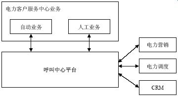 电力客户服务中心整体结构根据呼叫中心方案设计,采用呼叫中心平台系统为客服平台,在平台上开发电力自动业务和人工业务系统;并且利用呼叫中心系统平台的互连互通能力跟其他电力相关软件系统对接,如后台电力营销子系统,电力管理系统,电力调度,电力网管,客户关系管理子系统等等。
